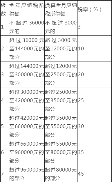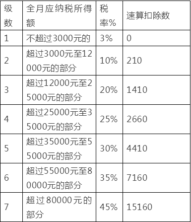 個(gè)人所得稅稅率表及速算扣除數(shù)